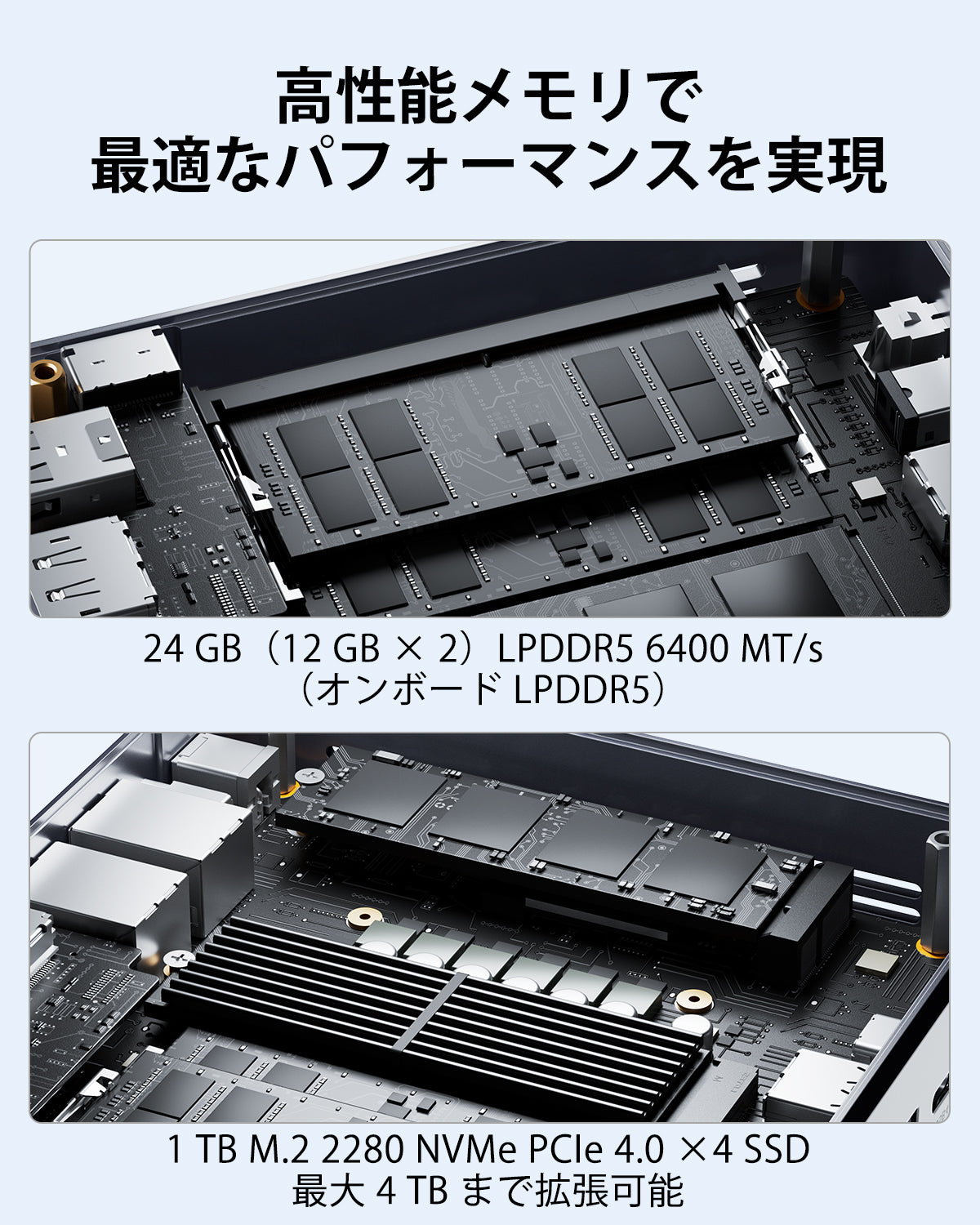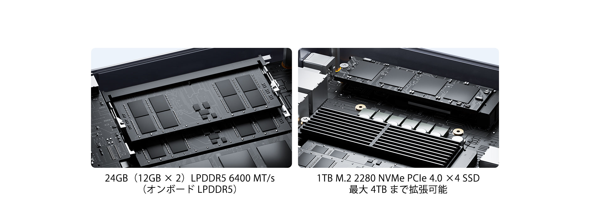 24GB LPDDR5 6400MT/s(オンボードメモリ、拡張不可) |