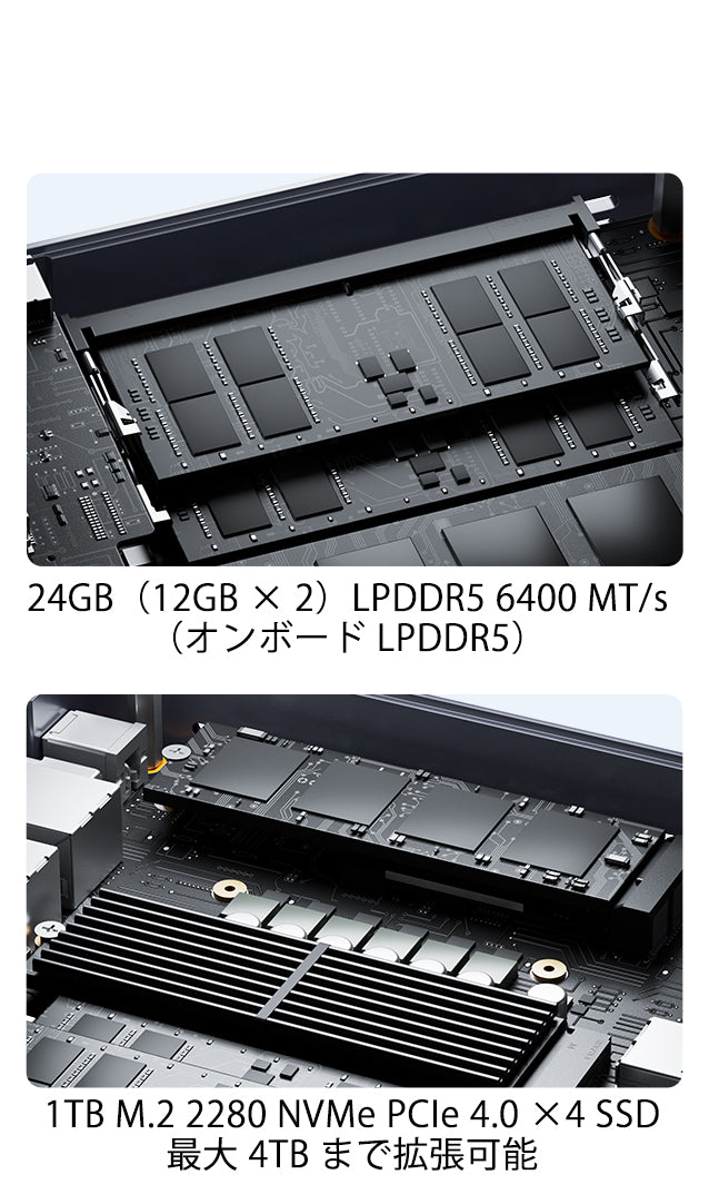 1TB M.2 2280 NVMe PCIe 4.0×4 SSD M.2 2280スロット×3(最大6TB、NVMe専用・SATA非対応) |