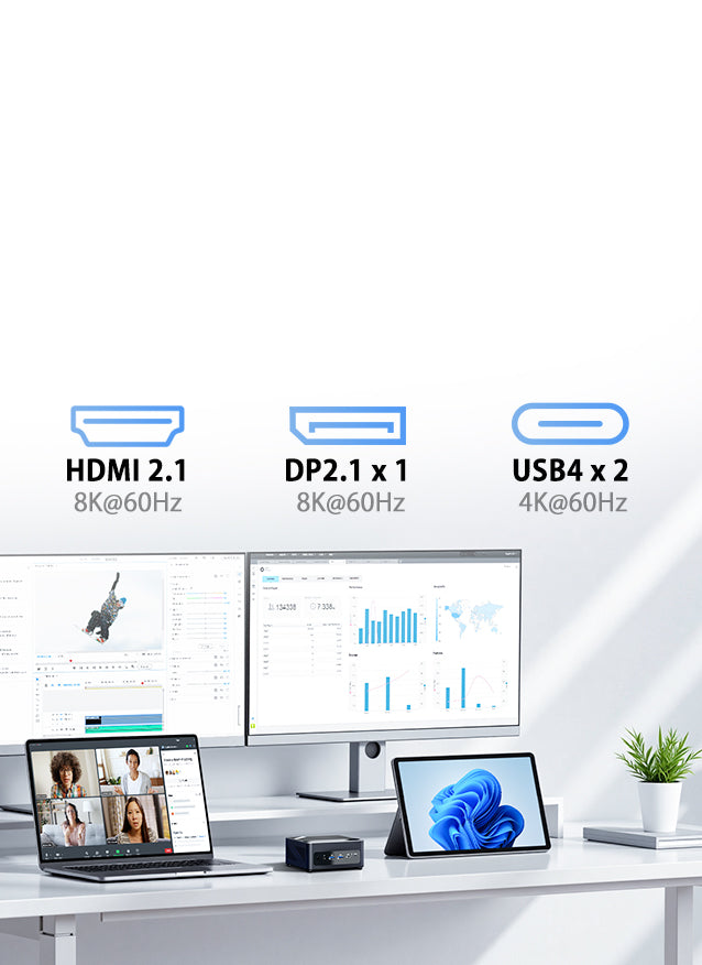 HDMI 2.1 ×1(8K@60Hz) DP 2.1 ×1(8K@60Hz) USB4 Type-C ×2(DP1.4対応、4K@60Hz) |