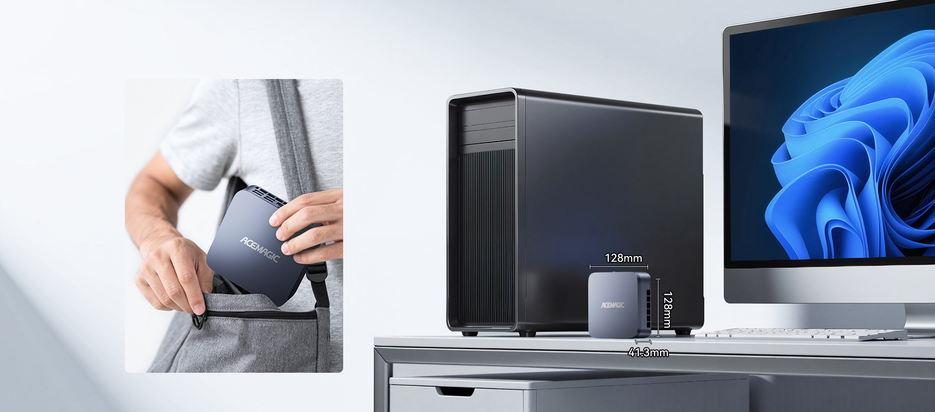 128×128×41.3mm の超コンパクトサイズ。ABS+PC 表面金属塗装仕上げで美しい外観。