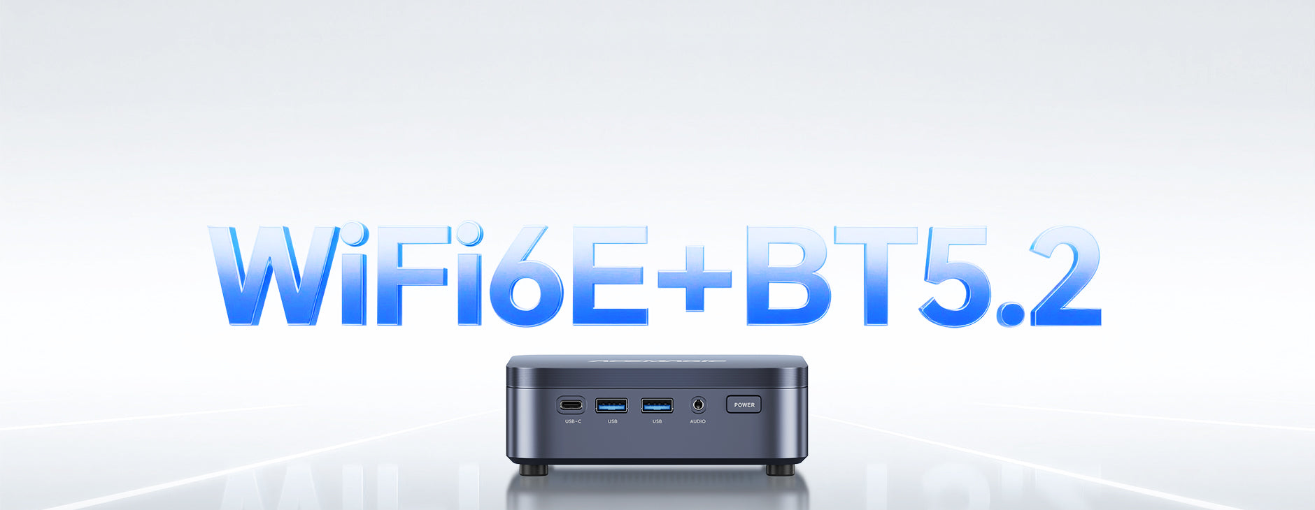 WiFi 6E + BT5.2 対応、1Gbps RJ45 有線ネットワーク。